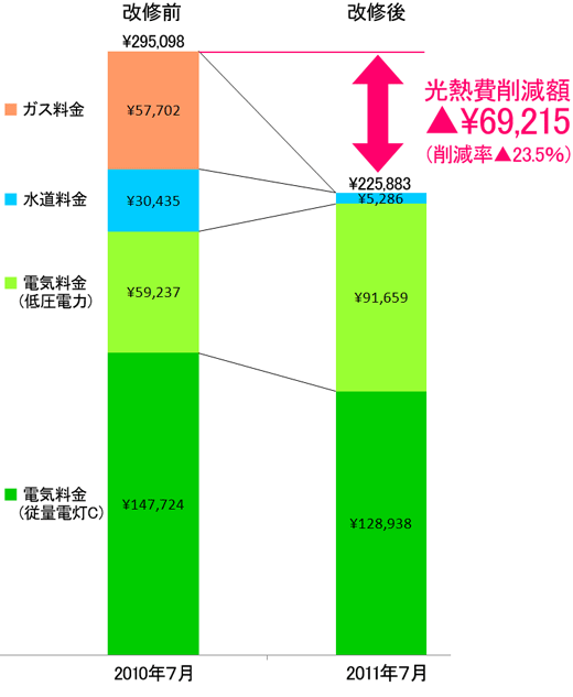 今回の省エネ改修の効果をお聞かせください。まず、ガス代・水道代・電気代はどのように変化しましたか。