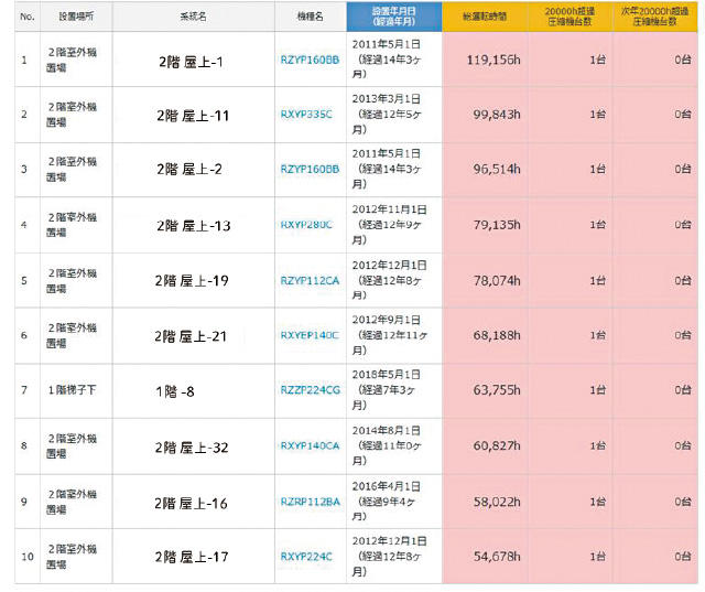 アシスネットのアプリを参照すれば、系統ごとに空調機の稼働時間がランキング形式でグラフ表示できるなど、稼働状況が可視化されました。これにより、稼働時間が長い空調機はあらかじめ故障に備えておくことが可能。故障する前に部品を交換すれば、故障にともなう出費を最小限に抑えられます。このように、空調機保全を計画的に行えることは大きなメリットです。