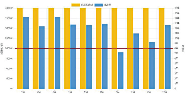 稼働時間をランキング形式でグラフ表示できるなど、空調機の稼働状況を可視化することができます。