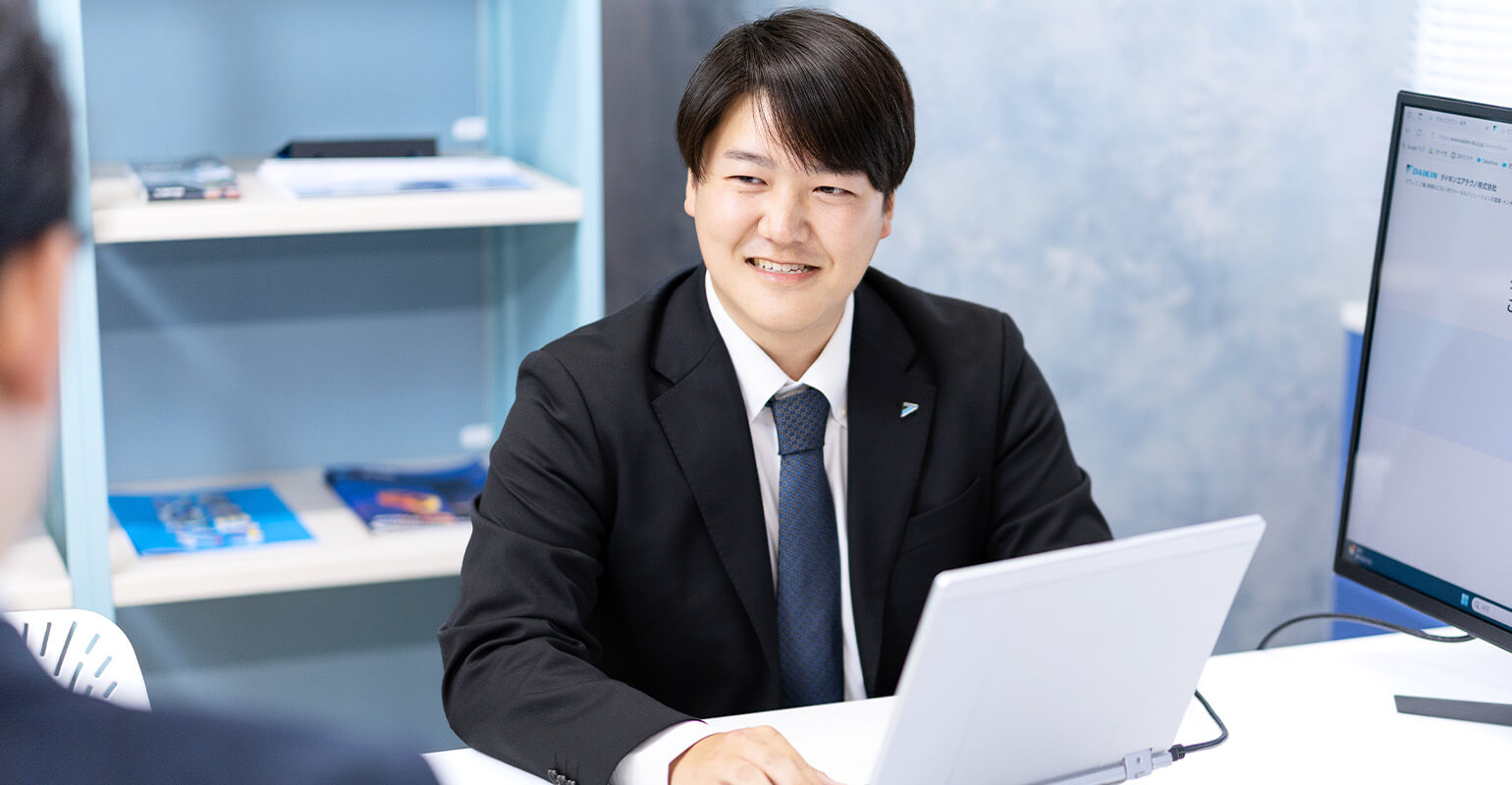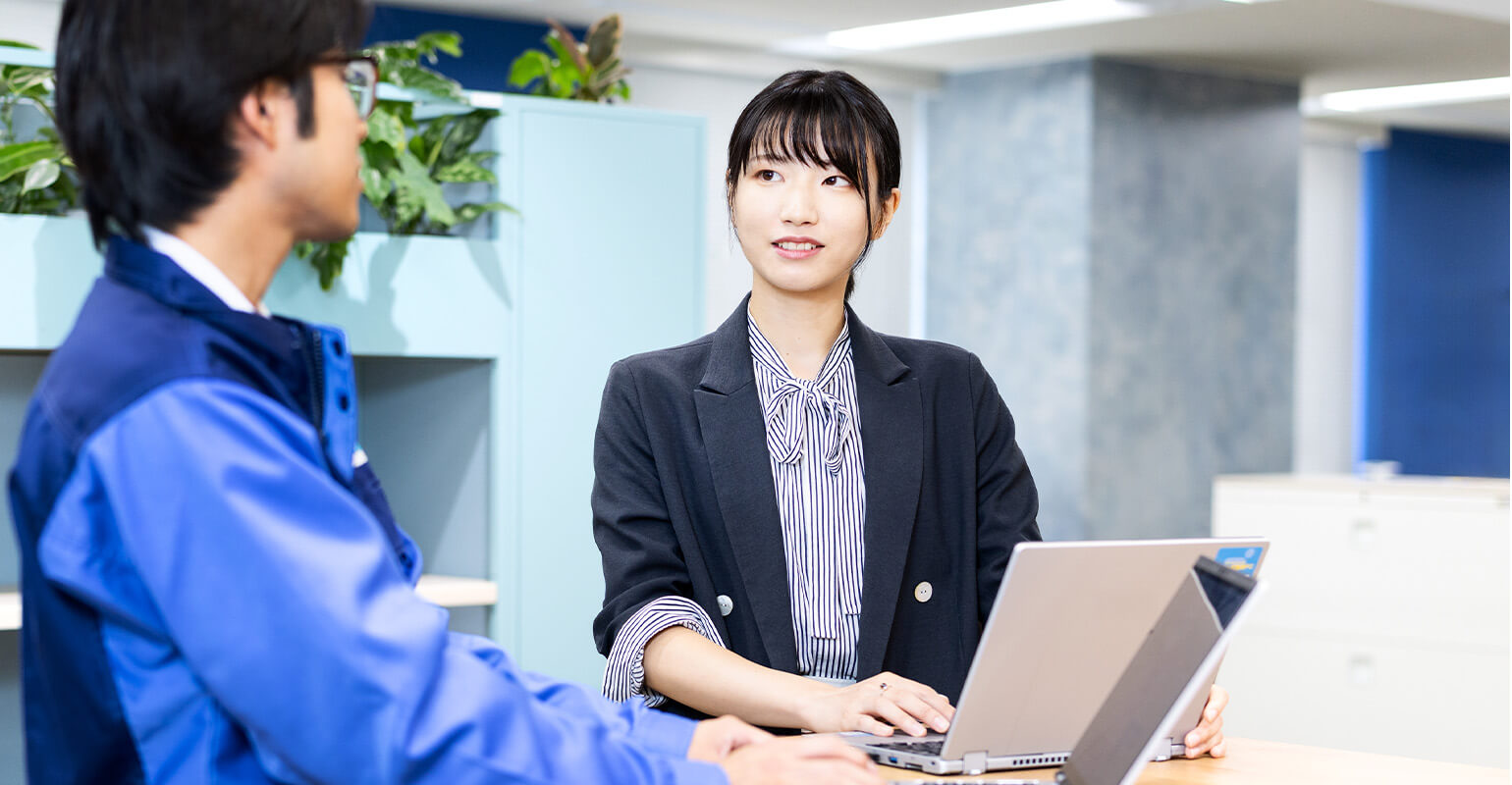 設計・施工・保守部門と連携し、課題解決に向けた最適な計画を立案・推進する役割を担います。お客さまは8割以上が、既存かつ法人のお取引先です。