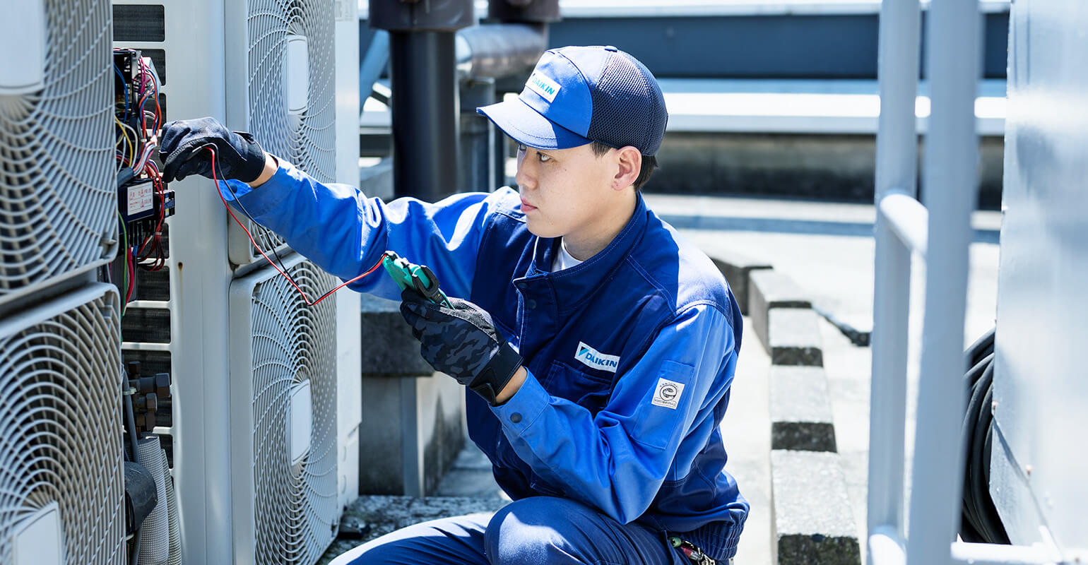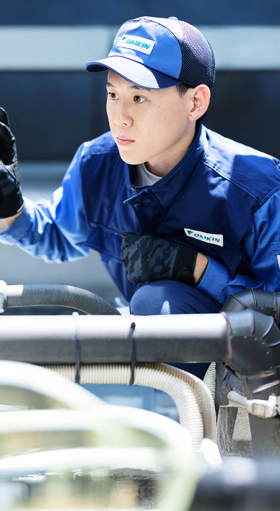 空調設備の定期点検や修理対応を通して、お客さまの設備を安定的かつ安全に運用できるよう支援します。