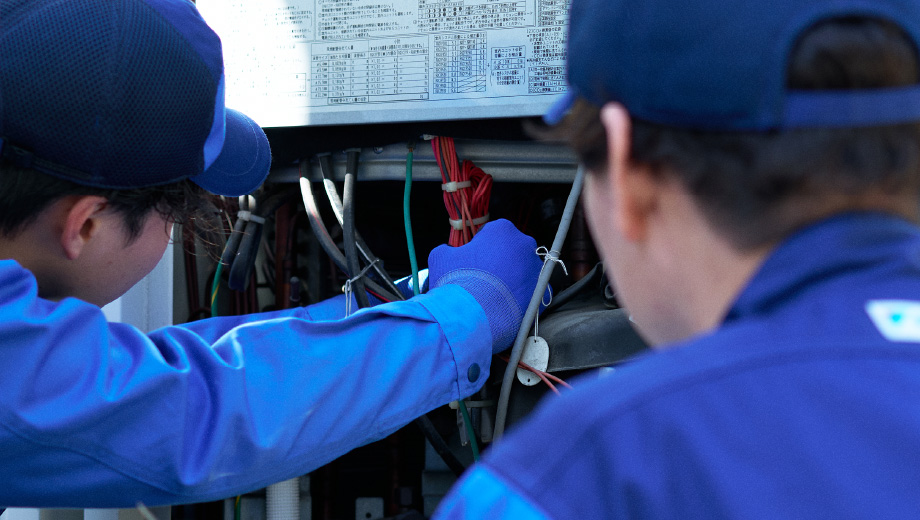 ダイキンエアテクノでは建物設備の導入だけでなく、建物管理を代行するサービスを展開しています。お客様の建物設備を管理し、予防保全を行うことで故障を防止します。たとえ、不具合が発生してもサービスエンジニアが迅速に駆けつけ、対応にあたります。