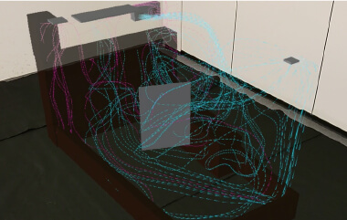 空調や換気の気流を可視化し改善対策の効果を検証。